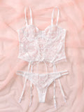 Floral Lace Underwire Garter Lingerie Set
